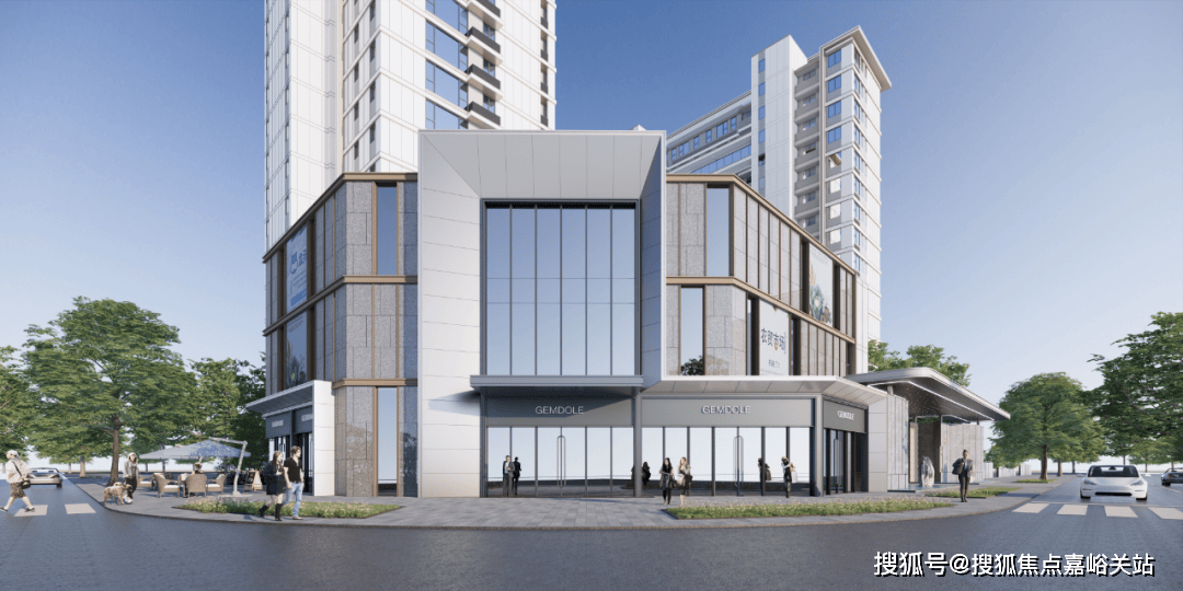 外立面大面采用浅色仿石多彩漆,浅灰色金属格栅,浅灰色玻璃,香槟色金属型材收边形成。楼体顶部也是运用了香槟色铝板以及香槟色的铝格栅。整体几何立面非常具有秩序感。