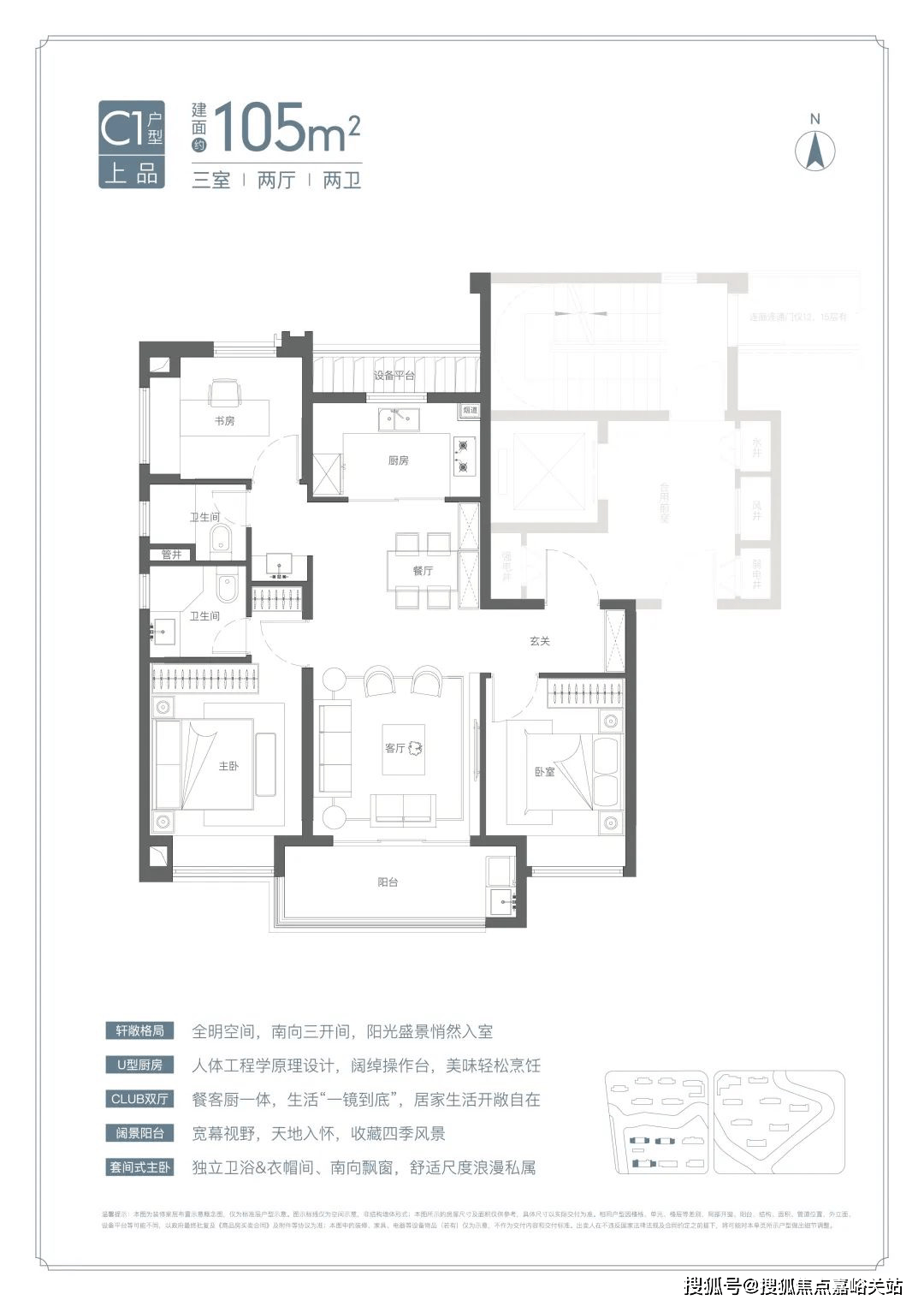 罕见宽厅设计:约95%的宽厅设计出现在120㎡以上户型中,而项目在约105㎡面积段就做了宽厅,非常难得,这个户型进入二手房市场将极具竞争力。