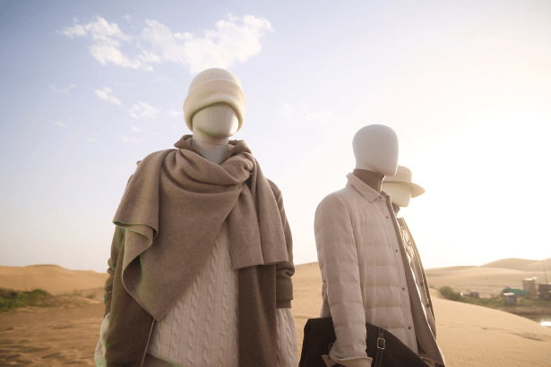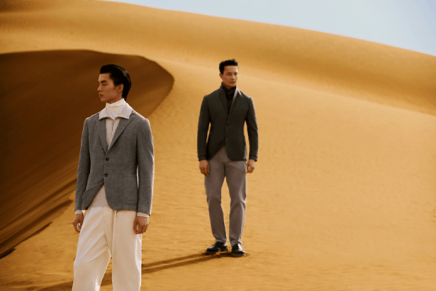 容系列的羊绒,源自阿拉善这片独特的土地——在昼夜温差悬殊的严苛环境里,经世代牧羊人悉心守护,才孕育出纤维细腻、韧性出众的优质原料。系列不仅引入了曾斩获LoroPiana年度最佳羊绒大奖的“金奖羊绒”,其纤维平均细度仅约14微米,触感细腻奢华;还创新打造“云感丝羊绒”,以阿拉善羊绒搭配6A级桑蚕丝,再结合经典版型,实现多季节穿搭。这不仅贴合精英群体推崇的长期主义价值观,更让每一件衣服,都成为对自然馈赠的珍视与回馈。