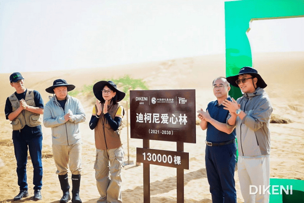早在2021年,DIKENI就已携手中国绿化基金会,推进“沙漠锁边林”计划;而在此次方舟艺术馆活动中,品牌更进一步启动“沙漠绿洲五年计划”——承诺到2030年,种下13万棵树,治理近200万㎡沙化土地。DIKENI走过的每一步,种下的每一棵树,都藏着对地球的善意与包容。